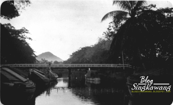 [caption caption="Sungai Singkawang sekarang: pepohonan tua, jembatan Agen dan sungai dangkal yang ditumbuhi rerumputan. Sekitar tiga tahun lalu, gerai makanan berjejer di bawah pepohonan sebelah kanan"]