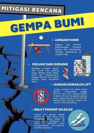Gempa Bumi merupakan salah satu bencana alam yang dapat terjadi secara tiba-tiba dan menimbulkan dampak besar bagi kehidupan manusia. Oleh karena itu, masyarakat perlu memahami langkah-langkah mitigasi agar dapat mengurangi risiko ketika gempa bumi terjadi. Poster ini memberikan panduan sederhana yang dapat dilakukan seseorang ketika terjadi bencana Gempa Bumi.