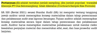 d. Konsultasi dengan ahli statistik : Untuk mendapatkan ukuran sampel yang paling tepat dan sesuai dengan konteks audit, konsultasi dengan ahli statistik sangat disarankan. Mereka dapat membantu menentukan metode sampling yang paling tepat dan mempertimbangkan faktor-faktor lain yang relevan, seperti tingkat risiko dan biaya.