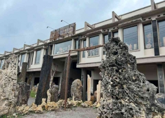 Begitu turun dari kendaraan, pandangan langsung tertuju pada deretan batu-batu raksasa di halaman. Beberapa menjulang setinggi dua meter, berlubang-lubang seperti spons raksasa, sementara yang lain hitam pekat dan keras seperti sisa batang pohon purba yang membatu.