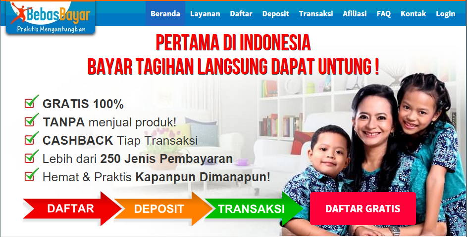 Anda mungkin saja masih asing dengan Bebasbayar. Bebasbayar adalah layanan pembayaran tagihan rutin yang dapat digunakan dengan sangat praktis, mudah, cepat, aman dan ngak ribet. Sehingga dengan menggunakan Bebasbayar, anda tidak hanya bisa membayar tagihan listrik saja, melainkan dapat membayar tagihan PDAM, tagihan Telkom speedy, tagihan telepon, asuransi, TV kabel, cicilan kendaraan dan lain sebagainya.