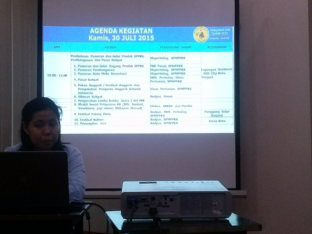 Dari pemaparan Ibu Airin, ternyata rangkaian kegiatan Harganas keren keren banget loh. Acara puncak Harganas ini akan jatuh pada 1 Agustus nanti yang rencananya akan diadakan di Lapangan Sunburst (milik BSD City). Beberapa rangkaian acara Harganas yang sudah dipersiapkan TangSel diantaranya akan ada performance dari Dik Doank, pemberian Kartu Indonesia Pintar, Kartu Indonesia Sehat, Kartu Indonesia Sejahtera oleh Bapak Presiden Jokowi, pemecahan rekor MURI 22 ribu ikrar remaja untuk penundaan usia perkawinan.