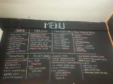 Anda penggemar fanatik teh? Coba deh olahan racikan teh yang seger seperti Matcha Tea Latte, Greentea Latte, Strawberry Latte, Greetea Cappucino, Black Current Latte Lychee Tea Latte, Original Milk Tea, Caramel Tea Latte dan Manggo Tea Latte. Sajian the yang ciamik ini cukup merogoh kocek Rp 6.000 saja. Sajian olahan Chocolate, Milk Shake, dan tentunya Smoothies menjadi primadona di Bar yang didirikan oleh Zulhizar Sasmita pria berusia 24 tahun ini. Nah, untuk dessertnya disini kamu bisa mencicipi berbagai varian pusing dan es krim yang sangat menggoda iman. Sandwich roti isi juga bisa menjadi pelengkap hidangan anda saat berkunjung ke Moustache Ice Bar.