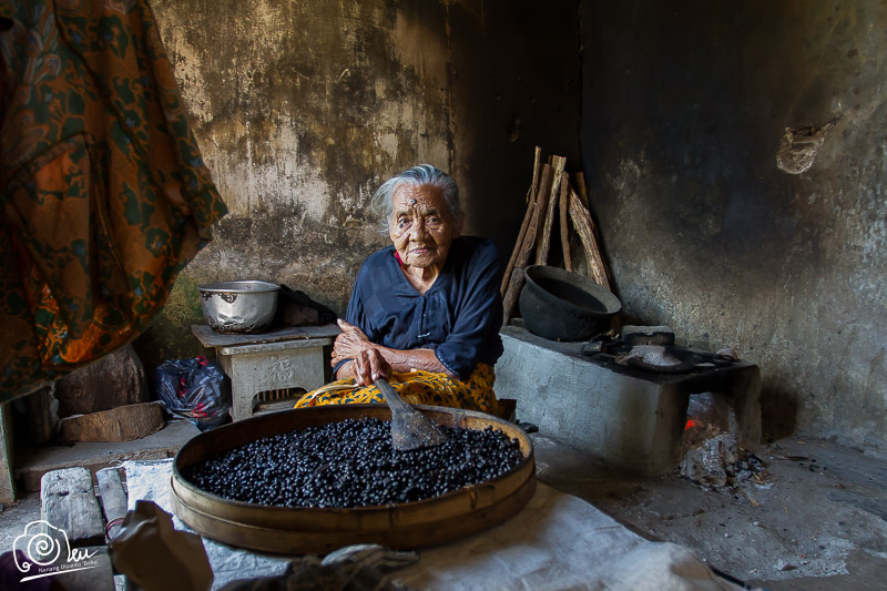 [caption caption="sambil bekerja mbah Tekluk bercerita tentang kopinya "]