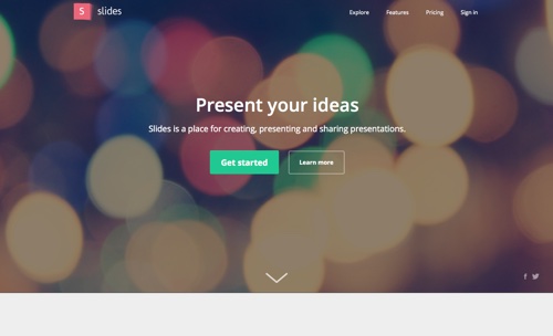 Slides artinya tool presentasi online yang menggunakan reveal.Js, sebuah open-source presentation framework. Slides merupakan platform yang mudah dipakai dengan CSS editor, revision history, variasi tema dan transisi. Presentasi juga bisa di kontrol menggunakan perangkat mobile (touchscreen). Harga: Free buat public decks & penyimpanan 250MB. Sedangkan buat versi pro $6/bulan.