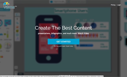 Visme ialah tool presentasi online yang mudah digunakan buat membentuk konten visual. Visme adalah platform tunggal, dengan banyak template, buat membentuk infografis, presentasi, diagram, banner web, animasi, dan resume. Visme dilengkapi lebih dari 100 font, ribuan vector assets gratis, dan graph tools. Kita dapat menshare secara online, embed ke website, atau men-downloadnya buat digunakan secara offline. Harga: Free maksimal buat 3 project. Sedangkan versi berbayar $6/bulan.