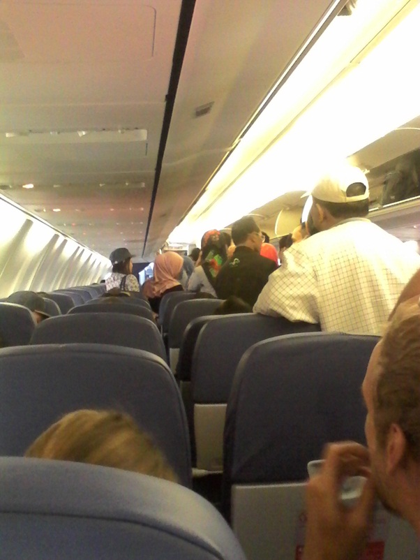Ketika jam di HP saya menunjukan pukul 05.40, petugas bandara atau pesawat Lion Air pun memberi himbauan kepada seluruh calon penumpang untuk masuk ke pesawat. Ternyata boarding pesawat yang saya dapat menunjukan bahwa saya harus transit terlebih dahulu di Bandara Adi Sucipto Yoyakarta sebelum ke Jakarta. Dan saya mendapatkan tempat duduk di dekat pintu darurat, 20B. Sedangkan perjalanan dari Bandara Adi Sucipto menempati tempat duduk 28F. Jatah tempat duduk di dekat pintu darurat mengemban tugas berat seandainya Allah SWT berkehendak, maka pintu darurat itulah bisa menyelamatkan nyawa jika terjadi hal-hal yang tidak diinginkan. Tetapi, ada sisi positifnya, yaitu ruang gerak kaki yang lumayan luas bisa mencegah kaki dari serangan kram. Lumayan kan?