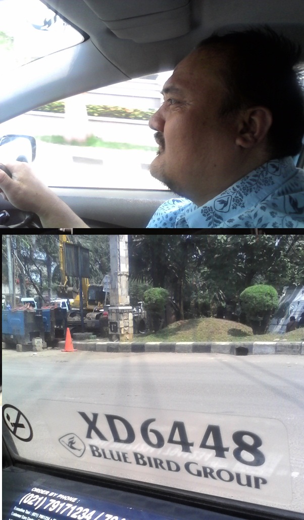 Setelah melakukan sesi foto buat kenang-kenangan, beberapa menit kemudian taxi yang kami pesan pun muncul. Perjalanan pulang menggunakan Taxi Blue Bird dengan Nomor Pintu XD 6448 yang disopiri oleh Bapak Widi Andhika, berusia 27 tahun dan masih single. Penampilannya yang tenang dan murah senyum membuat kami senang untuk mengobrol. Yang menarik adalah Bapak Widi Andhika berasal dari Ketanggungan, Kabupaten Brebes. Hanya beda kecamatan dan jaraknya kurang lebih 10 kilometer dengan kampung saya. Sepak terjang Bapak Widi Andhika sangat menarik. Menurut beliau sudah bekerja di Blue Bird sudah 3 tahun. Sebelum menjadi sopir di Blue Bird, bekerja sebagai penjual bensin eceran. Tetapi karena mempunyai keahlian mengendarai kendaraan dan SIM serta ada lowongan kerja sopir maka gayung pun bersambut. Bapak Widi Andhika pun mencoba melamar sebagai sopir Blue Bird dan diterima. Bapak Widi Andhika mempunyai prinsip yang menarik dalam bekerja, khususnya sebagai sopir di Blue Bird.