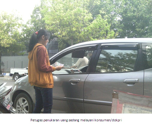 Untuk mendapatkan pecahan uang 1 ribu, 2 ribu, 5 ribu, 10 ribu dan 20 ribu, Mas Andri harus berangkat pagi-pagi ke Bank Indonesia (BI) Solo - Jawa Tengah. Melalui pendaftaran terlebih dahulu melalui jasa orang luar yang ikut tukar uang biar lebih praktis, Mas Andri harus mengeluarkan “uang jasa” kepada orang luar tersebut.