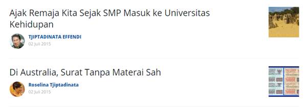 Terjadi kejadian menarik dalam lini masa 'artikel pilihan Kompasiana' tanggal 2 Juli 2015.