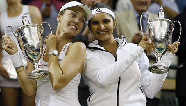 Sehari sebelum menjadi juara bersama Paes, gelar juara ganda putri juga direbut oleh Martina Hingis bersama pasangannya Sania Mirza. Pasangan yang diunggulkan di tempat pertama tersebut mengalahkan ganda Rusia yang diunggulkan di peringkat kedua, Ekaterina Makarova/Elena Vesnina, melalui pertarungan sengit tiga set 5-7 7-6 (7-5) 7-5.