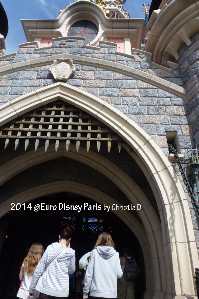 [caption caption="Jembatannya merupakan jembatan beton yang tidak dapat dinaik-turunkan. Berbeda dengagn di Disneyland yang lain. Tetapi pintu pagarnya tetap bisa dibuka tutup, sesuai dengagn konsep sebuah kastil jalam abad pertengahan."]