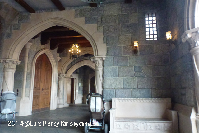 Istana ini, seperti Istana di Disneyland yang ada di seluruh dunia, selalu dikelilingi parit atau kolam, dimana selalu diisi oleh ikat-ikat cantik dan angsa putih serta bebek. Di beberapa Disneyland, istana disana mempunyai jembatan yang bisa dinaikkan (ditutup), tetapi tidak di Euro Disey, karena untuk membuat jembatan yang bisa di naik-turunkan, memerlukan biaya yang lebih banyak. Tetapi justru Istana di Euro Disney ini, mempunyai komsep yang sangat berbeda dengan Istana2 di Disneyland yang lain.