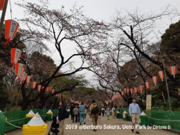 Deretan bunga2 Sakura berwarna putih dan keunguan di Ueno Park