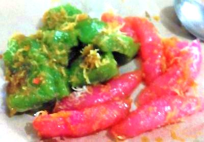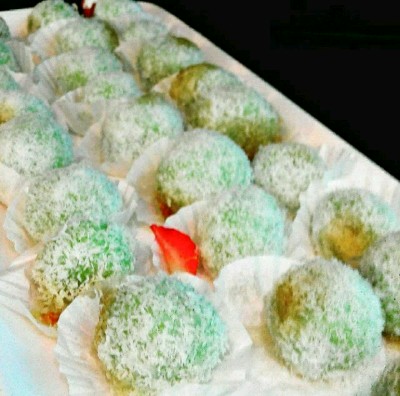 Dulu waktu masih di Malang, saya dan kakak nomor dua hobi membuat klepon. Prosesnya nampak mudah tapi kakak jarang berhasil memasukkan gula kelapanya dengan rapi. Kadang gulanya muncul, sehingga permukaannya tidak hijau mulus.