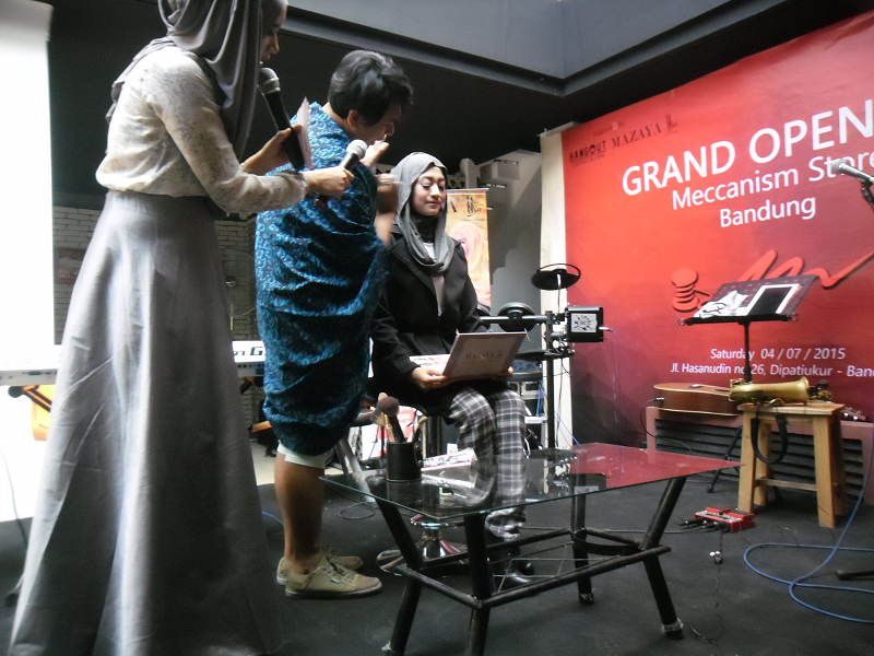 Ketika saya tiba disana, tempat itu sudah ramai oleh tamu undangan, kru, perwakilan dari berbagai media yang meliput, dan tak ketinggalan beberapa kompasianer Bandung yang sudah hadir. Sebagai public figure yang menjadi sentral perhatian, sore itu Zaskia Mecca tampak anggun dalam balutan jilbab cokelat muda. Tasya Nur Medina, sang kakak, tampak manis dalam balutan busana biru. Kedua bersaudari ini tengah menjadi tuan rumah bagi para undangan yang hadir dalam acara Grand Opening Meccanism Store cabang Bandung. Setelah sukses membuka 7 butik di berbagai kota, Meccanism Store Bandung ini merupakan butik kedua yang ditangani langsung oleh Zaskia. Zaskia menuturkan, belajar dari pengalaman bisnis sebelumnya yang sempat kewalahan menangani orderan, pembukaan Meccanism Store Bandung ini sudah dipersiapkan dengan lebih matang.