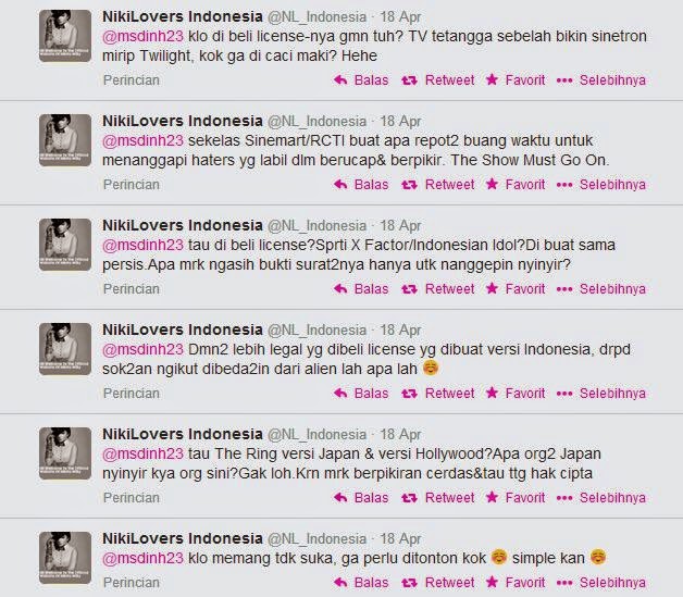 Tweet dari akun situs berita online yang memberitakan bantahan plagiat. Bantahan tinggal bantahan, aku baca isi artikelnya lebih lanjut, ternyata bantahan tersebut bukan dari rumah produksi sinetron itu (SineMart) atau pun dari media penyiarannya (RCTI), melainkan klaim dari akun penggemar Nikita Willy, yang masih diragukan kebenarannya. Mencoba Menonton Penasaran dengan jalan cerita sinetronnya, aku niatin buat nonton episode pertamanya pada hari Senin, 28 April 2014. Ternyata...