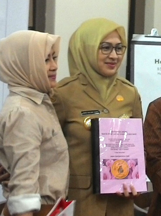 Di sela acara, ada penyerahan “bingkisan” untuk Walikota Tangsel Airin Rachmi Diany, berupa kumpulan sebanyak 45 tulisan Kompasianer Tangsel, yang diberi titel ‘Mata Pena’ Untuk Tangsel Lebih Baik. Kliping setebal 322 halaman ini adalah karya tulisan 11 Kompasianer yang bermukim di Kota Tangsel dan sekitarnya. Adalah KompasianerNgesti Setyo Moerni yang menyampaikan langsung kumpulan tulisan dengan beragam tema seputar Kota Tangsel ini, langsung kepada Walikota Airin. Tepuk tangan para hadirin pun membahana, sebagai bentuk apresiasi bagi ide cerdas Kompasianer Tangsel.