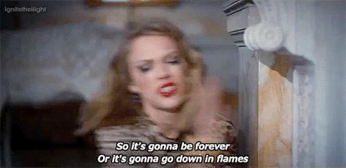 Contohnya: So it’s gonna be forever, or it’s gonna go down in flames. (pasti mbacanya sambil nyanyi deh)
