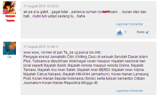 Seorang kompasianer terverifikasi yang juga seorang pengajar jurnalis cilik yang tulisannya sudah diterbitkan di banyak media cetak maupun online.Tergelincir lidah dan jari menulis komentar kasar dan makian dengan menyebut alat kelamin.