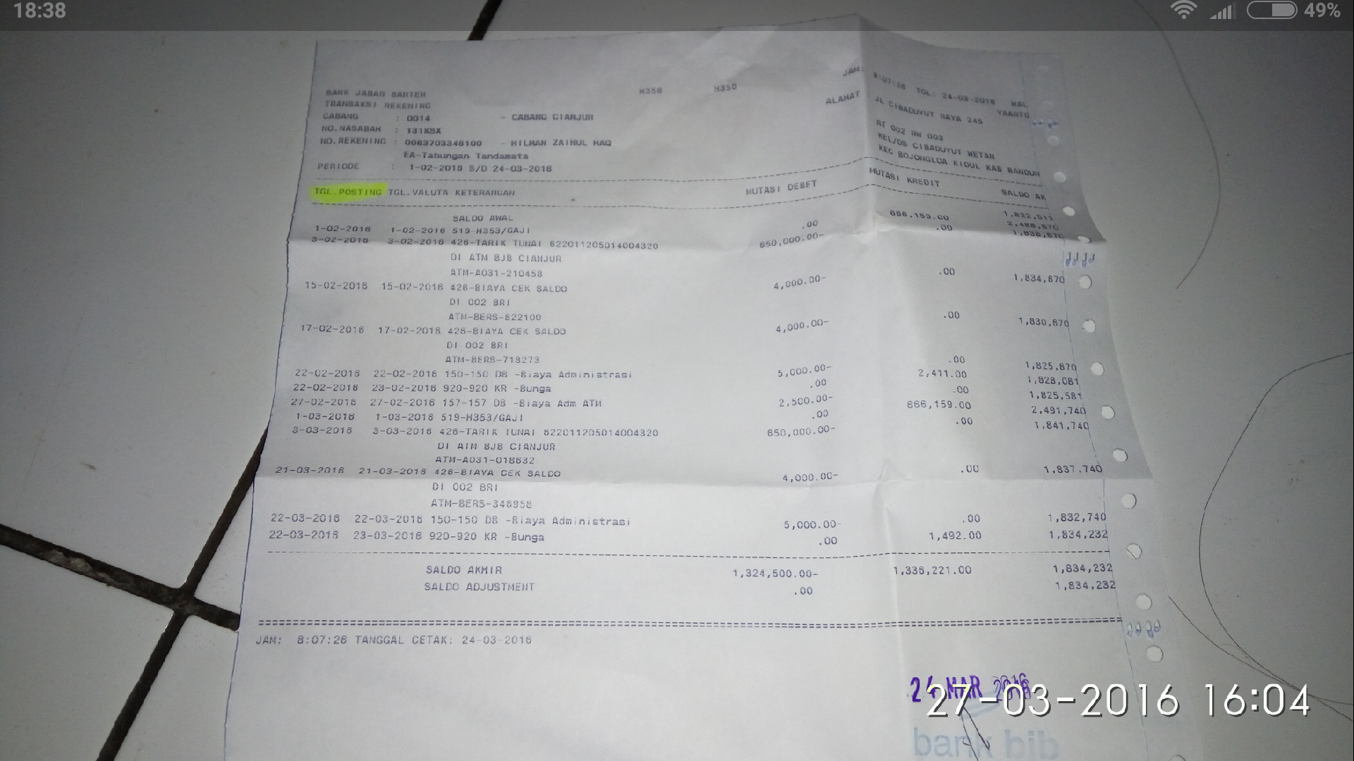 Dan KEKECEWAAN SAYA BERLANJUT GAN, tanggal  21 maret 2016 dana refound tidak sepeser pun ada yang masuk ke rekening saya, dan LAGI LAGI saya diminta untuk memberikan data MUTASI REKENING, kemudian dengan rasa lelah saya melangkah ke bank untuk membuat data tersebut, kemudian tanggal 24 maret 2016 saya mengirimkan bukti tersebut ke LAZADA.