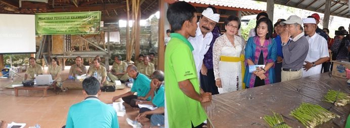 Jajaran Dinas Pertanian Kab. Badung memberikan pelatihan tentang tata-kelola irigasi kepada para petani di Subak Legena dan Subak Batanwani, Kecamatan Mengwi, bersama Perkumpulan Petani Pemakai Air (P3A) di wilayah setempat. Foto kanan: Bintang Puspayoga, istri Menkop dan UKM RI, A.A. Puspayoga, mengunjungi Koperasi Tani Mertanadi di Desa Plaga, Kecamatan Petang. Koperasi tersebut bergerak dalam program one village one product (OVOP), fokus pada tanaman asparagus. Foto: pengairanbadungkab.net dan beritadewata.com