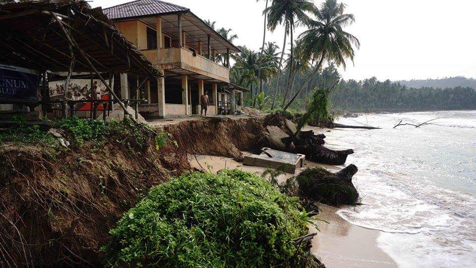 Pantai yang rusak dan penginapan yang sudah mulai longsor