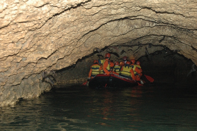 Riuh suara gemericit ribuan kelelawar di dinding gua berpadu dengan suara kecipak air ribuan ekor ikan di sungai yang ada di bagian bawahnya laksana paduan suara orkestra alami.