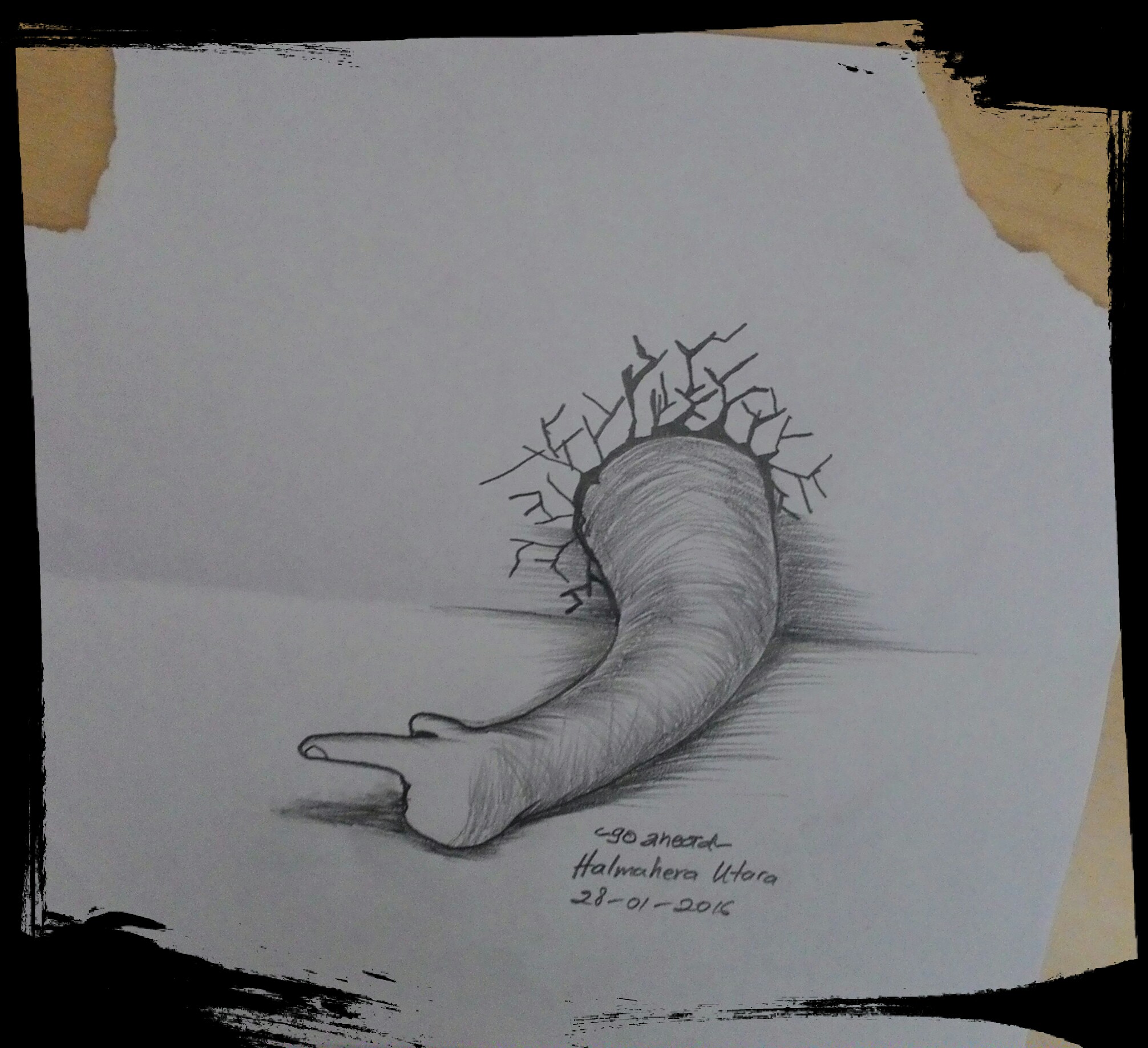 3. menggunakan teknik tumpang tindih kertas atau media gambar. Dengan menggunakan teknik ini, sebuah objek dapat terlihat 3D oleh penglihatan karena tumpukan media dengan kemiringan yang berbeda dan beragam akan menimbulkan efek perspektif dari objek yang berbeda-beda sehingga memecah sudut penglihatan mata. Dengan demikian akan tampak seolah-olah objek utama yang kita gambar menjadi hidup.