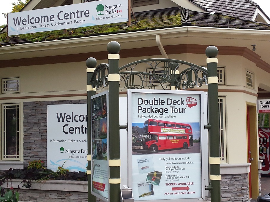 Semakin dekat ke tujuan, terdengarlah gemuruh suara air terjun. Sepanjang perjalanan terlihat banyak hotel dan motel berbagai bintang, berbagai atraksi entertainment seperti Ripley’s Believe or Not museum, Guinness Book of Records museum, MGM studio museum, dan Niagara Falls city tour. Terlihat sekali bahwa lokasi ini sudah sangat dipersiapkan sebagai tujuan turistik kelas dunia.  Semua gedung pertunjukan di sekitar Niagara Falls dibuat sangat unik dan menarik, yang akan ditampilkan fotonya di akhir tulisan. Fokus ke air terjun, penulis segera menuju gerbang air terjun Niagara. Ternyata lokasi ini dikelola di bawah Niagara Parks, semacam unit pengelola pemerintah propinsi Ontario yang mengurusi masalah pariwisata kawasan Niagara Falls. Pengunjung dapat meminta informasi di information center Niagara Parks, ataupun membeli tiket terusan adventure pass. Berhubung hari telah menjelang jam 3 sore, dan tujuan utama adalah merasakan naik perahu sampai ke deket air terjun, maka penulis segera menuju konter penjualan tiket wisata boat Niagara.