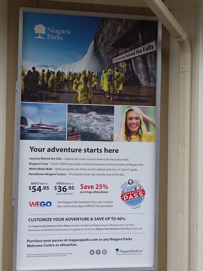 [caption caption="Bermacam harga tiket adventures Niagara Parks. "]