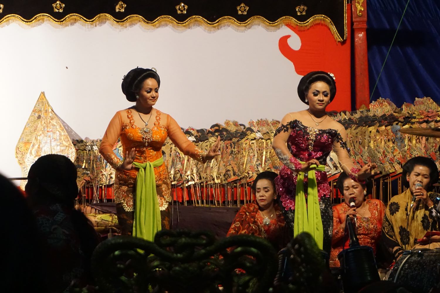 Oya, Tidak hanya bayangan wayang yang disajikan dalam pertunjukan ini. Di tengah-tengah acara, dua penyinden dengan gerakan lemah gemulainya menari tarian gambyong pareanom yang menyedot perhatian penonton untuk makin mendekati panggung.