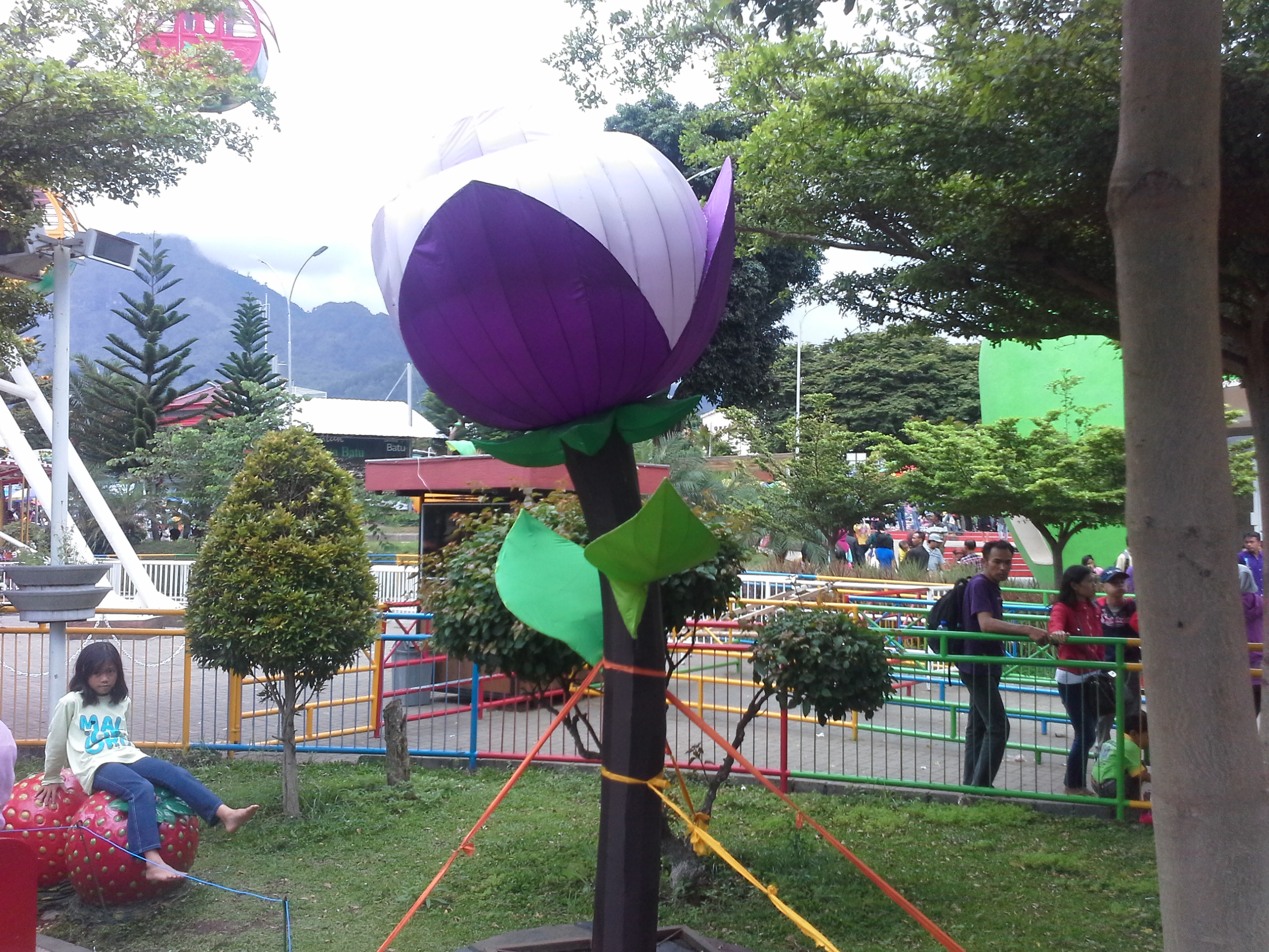 Lampion berbentuk buah dan aneka bunga juga bertebaran rapi di sekitar taman. Kota dingin ini dikenal pula sebagai kota berjuluk "Kota Apel", meski apelnya saat ini sudah cukup langka. Apel impor dari Thailand atau Amerika, sering membanjiri pasar buah lokal. Seolah apel dari daerah Bumijai Batu dan Poncokusomo sudah menghilang. Karena itu, apel lokal dari daerah lainnya pun sering didatangkan ke Malang Raya, termasuk Batu. Seperti mendatangkan apel lokal dari daerah sekitar Nongkojajar, Pasuruan. Maka para pemimpin dan petani apel kota Batu, tampaknya harus mengembalikan branding Kota Batu sebagai "Kota Apel". Kiranya, perlu inovasi bidang agrobisnis dan peremajaan bibit buah apel.