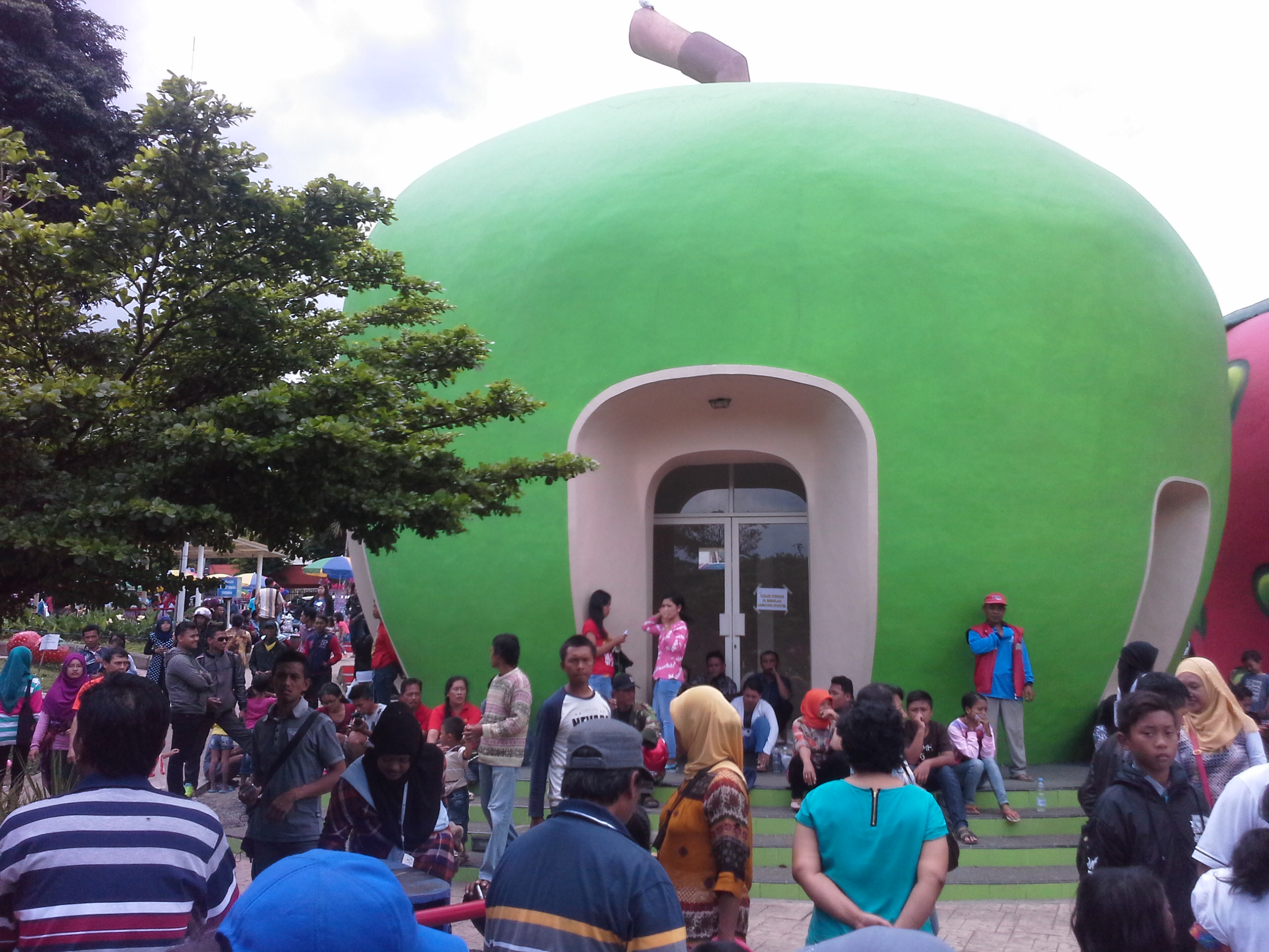 [caption caption="Bangunan berbentuk buah apel berwarna hijau, dulu difungsikan sebagai toilet/Dok. Pribadi"]