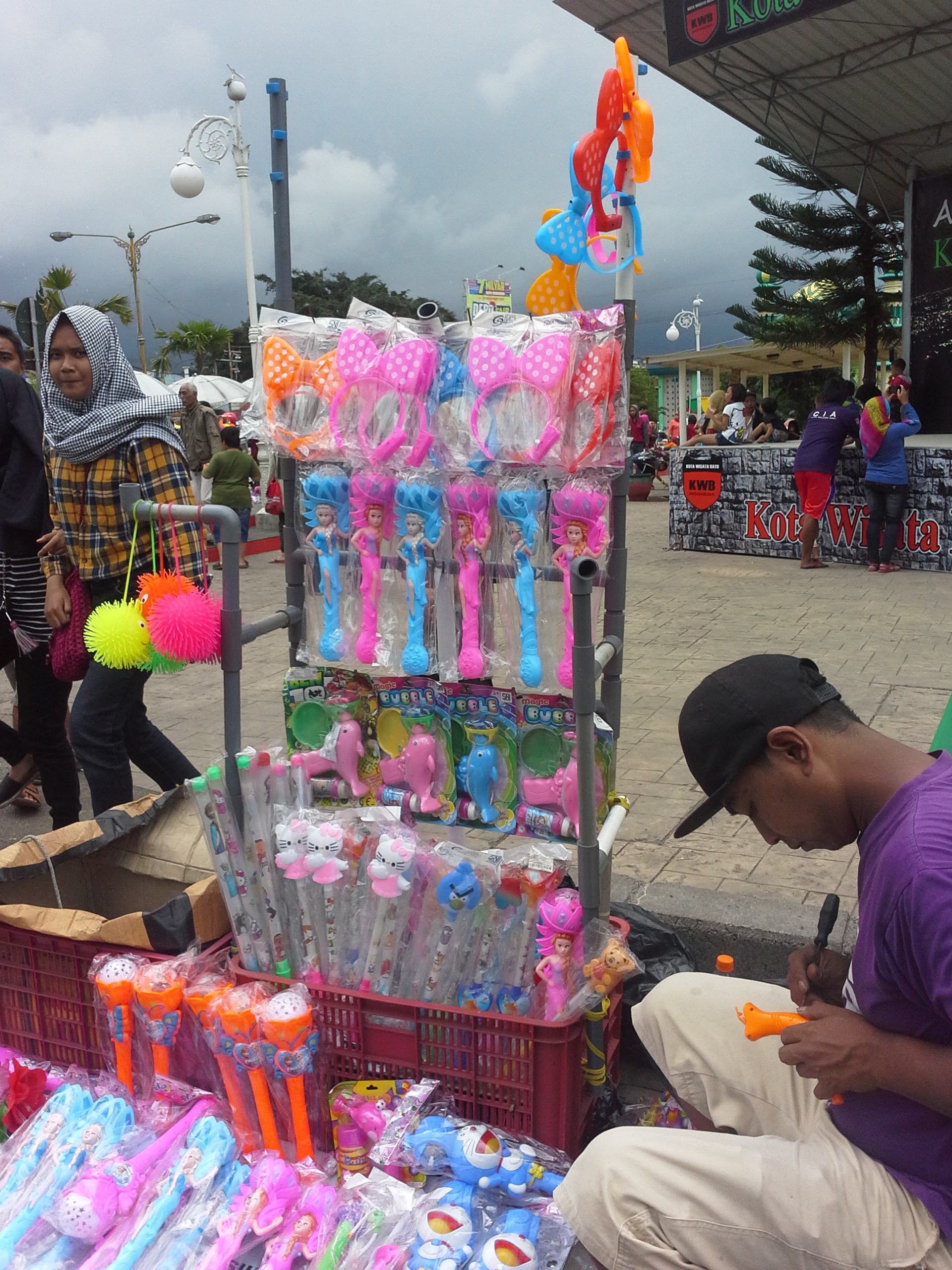 [caption caption="Penjual mainan anak-anak mengais rejeki di tepi trotoar/Dok. Pribadi"]