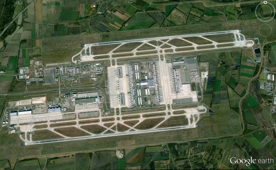[caption caption="Bandara Flughafen di Munchen, Jerman dengan dua landasan pacu yang sejajar."]