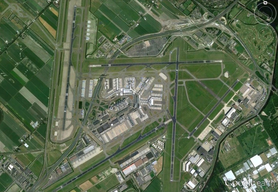 [caption caption="Bandara Schiphol, Amsterdam, Belanda dengan lima landasan pacu yang terkesan 'semrawut'."]