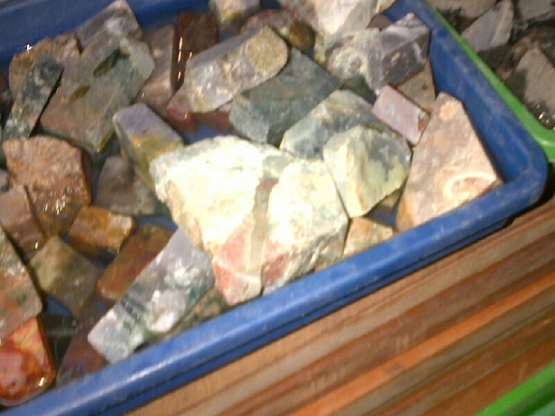 Selain potong dan poles batu, pak Wahyu juga menjual bahan mentah segala jenis batu. Ada batu Sungai Dareh, Kalimaya, Bio Solar Aceh, Panca Warna, Kecubung, Pacitan, Raflesia, Bacan Doko dan Bacan Palamea, Lavender, Black Opal, dan lain sebagainya. Bahan mentah batu-batu mulia itu ia beli dari supplier langganannya.