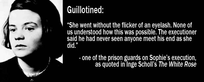 Jawaban Sophie Scholl di ruang pengadilan itu mengejutkan para jaksa penuntut, dan semua orang yang hadir di ruang sidang saat itu. Dia berkata dengan lantang dan mantabnya kepada para jaksa penuntut, “Somebody, after all, had to make a start. What we wrote and said is also believed by many others. They just don't dare to express themselves as we did.” Jadi Sophie mengatakan bahwa harus ada seseorang yang memulainya. Apa yang mereka katakan dan mereka tulis dalam selebaran itu sebetulnya diyakini dan diamini juga oleh begitu banyak orang lain, hanya saja mereka terlalu takut untuk mengekspresikan keyakinan mereka itu, tidak sama seperti ketiga pemuda pemberani ini. Bahkan Sophie dengan beraninya, pada persidangan berikutnya berkata lagi, “You know the war is lost. Why don't you have the courage to face it?” Kata-kata yang pastinya membuat para jaksa mengerenyitkan kening mereka, dan bertambah gusar.