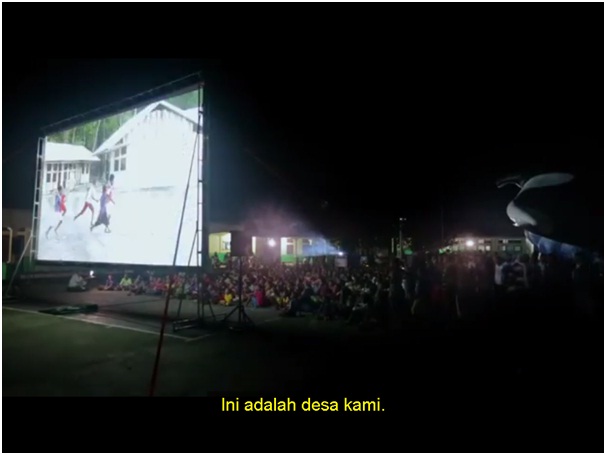 Lihat, warga begitu antusias melihat tayangan film itu.
