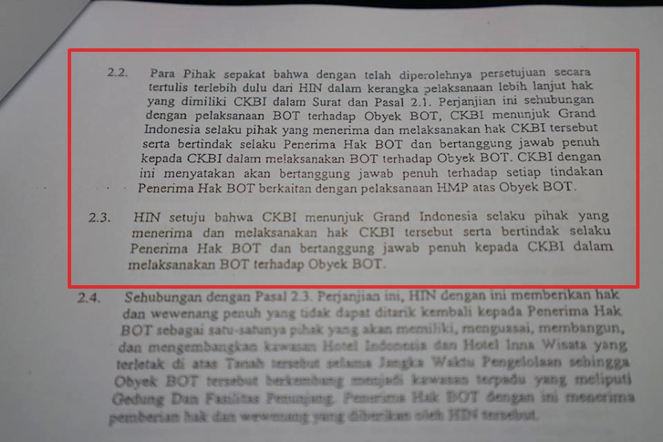 Sebulan terakhir, setelah isunya bergulir luas, saya menelisik isi kontrak kerjasama antara perusahaan BUMN ini dengan investornya, yaitu PT Grand Indonesia. Inilah fakta-fakta akta perjanjian yang saya temukan.