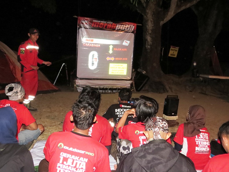 Malamnya kami kembali diberikan materi teori yang diselingi dengan acara kuis. Peserta yang bisa menjawab pertanyaan dengan benar akan mendapatkan hadiah berupa t-shirt Expedisi Cartenz saat perayaan peringatan hari kemerdekaan RI ke 70 yang lalu. Seperti yang sudah aku info di awal bahwa team Summit Cartenz Agustus lalu dimotori oleh para instruktur di SPTMP bersama dengan punggawanya, Kang Tedi.