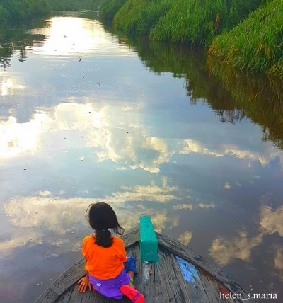 Saat klotok menyusuri sungai, saya berjemur matahari pagi sambil melihat ke kiri dan ke kanan sungai yang dipenuhi rawa, mangrove, tumbuhan air dan pohon-pohon. Warna hijau daun-daun memenuhi mata, bagi saya kesempatan ini seperti sedang melakukan terapi mata.