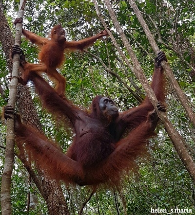 Lucu saat melihat cara Orangutan  makan pisang, cara mereka mengupas pisang tidak seperti kita membukanya dari bagian atas, tetapi dari bagian samping pisang. Ternyata pisang dimasukan sebanyak-banyaknya ke dalam mulut, dikunyah,  lumatan pisang dikeluarkan dari mulut, lalu dimakan kembali. Itulah hasil pengamatan siang ini hahaha.