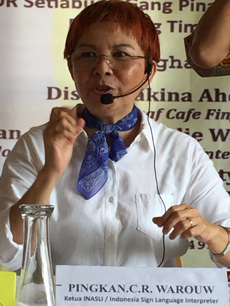 [caption caption="Penulis bersama Sign Language Interpreter Senior, Bu Pingky (ka) dan Bu Sasanti (ki) | Foto: Gaper Fadli"]