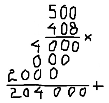 Pak Guru, “Yofri, coba kerjakan di papan tulis lima ratus di kali empat ratus delapan”