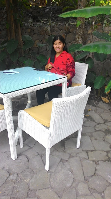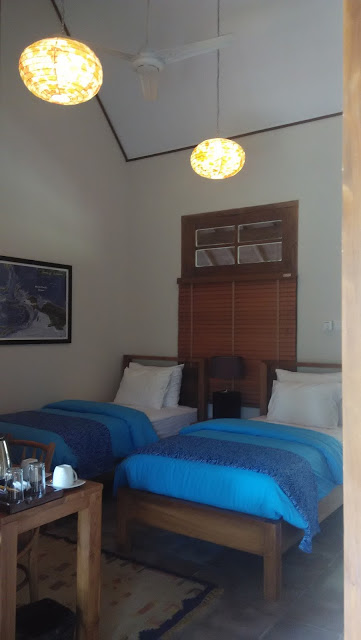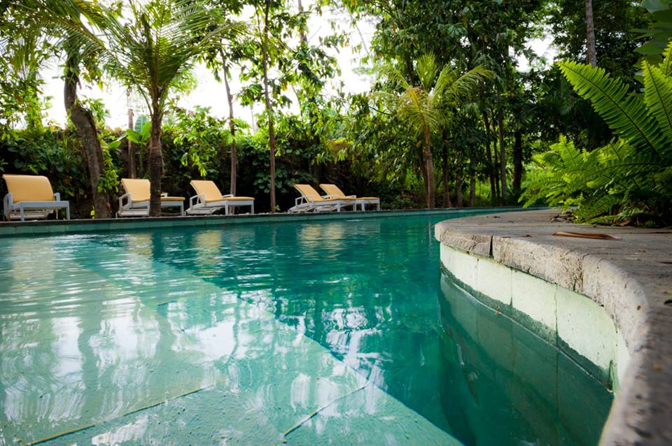 Setiap kamar dipisahkan taman, ada kerai bambu untuk menutup balkon jika sinar matahari mulai menyengat. Atap dari genting semakin menambah sejuknya kamar. Pak Lulut kemudian mengajak saya ke kolam renang, tidak begitu luas tapi bersih dan pastinya nyaman jika berjemur di pinggir kolam. Sambil melihat pemandangan yang hijau lagi hijau lagi, benar-benar memanjakan mata saya.
