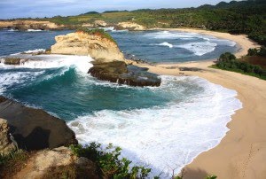 di pinggiran Pantai Klayar banyak gundukan yang memiliki ciri khas dari pantai lain yang berada di pacitan.