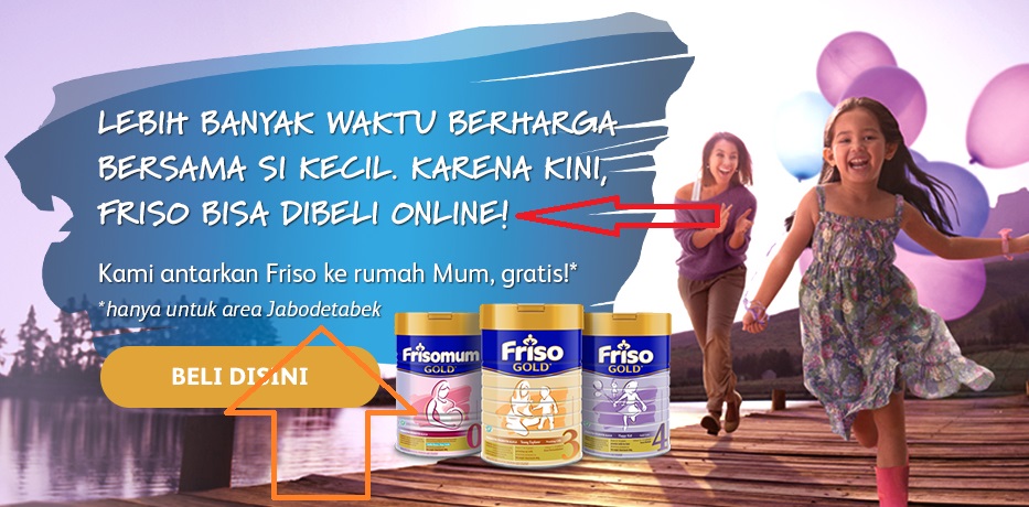 Anak saya ini sudah rutin sakit setiap bulannya sejak dia berusia 1 tahun, selama sekitar 5 bulan saya bingung bagaimana cara mengatasinya, semua cara yang saya tau sudah saya praktekkan, tetapi anak saya ini tetap saja sakit setiap bulannya. Akhirnya kira-kira 5 5 bulan yang lalau tanpa sengaja saya menemukan website www.Friso.co.id, awalnya saya tetarik membaca artikel-artikel aktivityyang ada di dalamnya, tepatnya artikel yang ada di friso moment. Tetapi, setalh beberapa hari selalu membaca artikel di Friso moment, saya mulai membaca artikel yang ada di www.Friso.co.id juga, ternyata di dalamnya ada susu balita yang menurut saya kandungannya sangat lengkap dan baik, jadi saya coba membelinya untuk anak saya. Seusai dengan usia anak saya, pilihan saya jatuh pada Friso Gold 3, susu untuk anak usia 1-3 tahun. Saya langsung memesannya secara online dan yang paling saya suka adalah bisa beli online, jadi tidak usah repot ke supermarket untuk membelinya dan juga bisa diantar GRATIS sampai ke rumah, bahkan kalau saya tidak salah, bisa dikirim GRATIS se-Jabodetabek, sebentar saya carikan tulisannya di websitenya dan akan saya share di bawah sini: