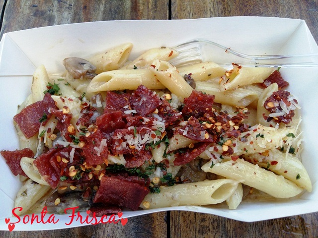 Karena begitu banyaknya pilihan makanan yang ada di JSFF, saya perlu berkeliling dua kali hingga akhirnya saya memutuskan untuk antre di Nest Grill, tenan yang menjual makanan dari negara Italia. Yap... hari ini saya akan pasta pene dengan jamur dan daging sapi asap.